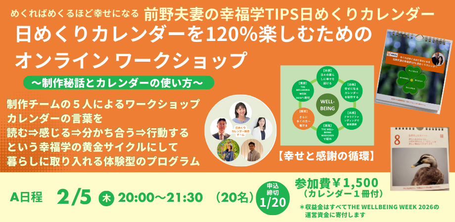 【2026年2月8日開催】前野夫妻の幸福学TIPS日めくりカレンダーを120%楽しむためのオンラインワークショップ